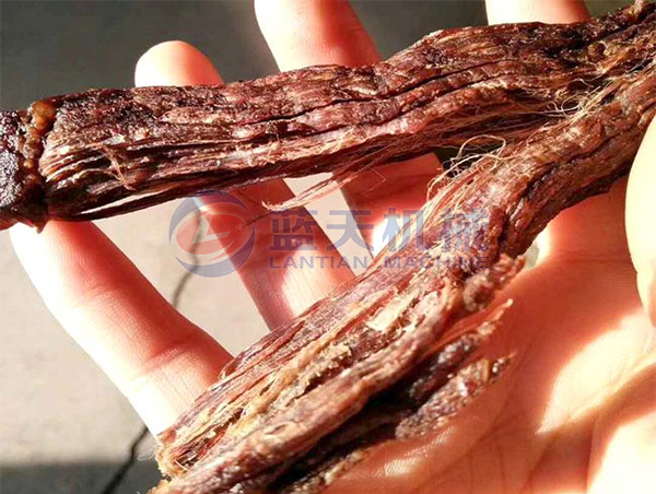 將肉條懸掛好在風(fēng)干室進(jìn)行風(fēng)干或新型熱泵牛肉干烘干房?jī)?nèi)選擇智能風(fēng)干模式。注意:肉條不能滴水,要掛直,相互不要粘連、肉條與肉條之間保留一點(diǎn)距離,以利于通風(fēng)透氣,干燥均勻。一般在溫度40℃,溫度約60%左右的室內(nèi)環(huán)境下,36小時(shí)即可干燥一批。這時(shí)可見牛肉顏色暗紅,手捏感覺干燥且微硬。